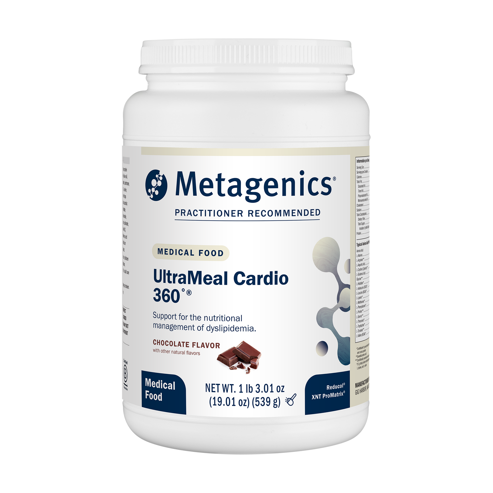 UltraMeal Cardio 360°® is a medical food specially formulated to support the nutritional management of dyslipidemia, an abnormal level of blood lipids. It is designed to complement a science-based food plan—supporting multiple pathways in the body that impact cholesterol and triglyceride levels to help nutritionally manage blood lipids. As part of a heart-healthy eating plan, the addition of 1.8 g/day of plant sterols/stanols has been shown to lead to beneficial changes in LDL cholesterol in individuals with hypercholesterolemia.