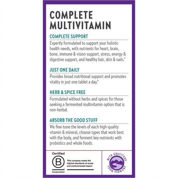 Provides broad nutritional support and helps promote vitality by delivering 22 whole-food fermented vitamins and minerals in one convenient tablet.*