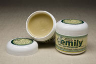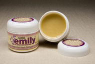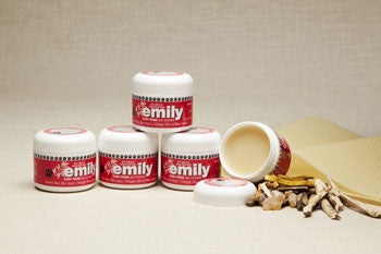 It is made of the bare, essential ingredients of the highest quality. We would not put anything scary on our Emily. We use olive oil, beeswax and three herbs: Angelica Sinensis root (Chinese name: Dang Gui), Potentillae Chinensis Herb (Bei Zi Cao), and Mentha Haplocalyx herb (Mint / Chinese name: Bo He). Our herbs are the highest quality and are from the highly respected Mayway company an American company that batch tests all of its herbs for contaminants, heavy-metals, and pesticides and does not use sulfur preservatives.