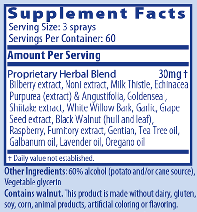 The nasal/pharynx region is an important part of maintaining healthy respiration for seasonal wellness. Biocidin® Throat Spray brings all the effectiveness of Biocidin® directly to the throat.