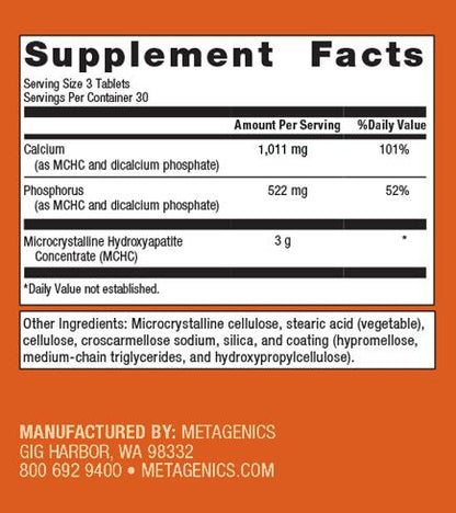 Bone Builder® Extra Strength provides bone health support with microcrystalline hydroxyapatite concentrate (MCHC), a highly absorbable crystalline compound comprised of naturally-occurring components of bone which is backed by over 30 years of research. MCHC contains naturally occurring calcium, phosphorus and trace amounts of other minerals, bone growth factors, and collagen and other vital bone proteins. Each serving of just three tablets provides over 1,000 mg of calcium.*