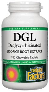 Deglycyrrhizinated Licorice (DGL) is a safe and effective licorice extract. It is specially processed to have glycyrrhizin removed to avoid potential side effects such as elevated blood pressure. DGL supports the integrity of the natural mucus lining of the stomach and intestinal wall.* It stimulates the protective factors which guard against weaknesses in these linings.*