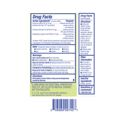 Find multi-symptom diarrhea relief wherever you go with Diaralia On the Go by Boiron. This homeopathic medicine is made with plant-based and other pure actives to relieve diarrhea and traveler’s diarrhea.* The meltaway pellets dissolve in your mouth without water, allowing you to act fast against intestinal pain, bloating, gas, nausea, and vomiting.* Recommended for ages 6 and up, Diaralia On the Go pellets are offered in convenient, portable tubes for relief that travels with you.
