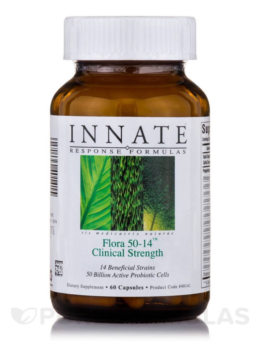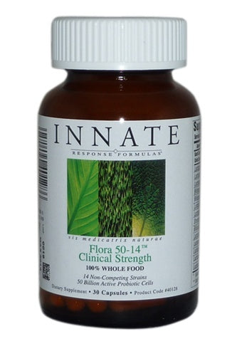 Cultivating and maintaining a balance of beneficial microflora is a foundational element in supporting the integrity of digestion. Probiotic supplementation supplies the beneficial microflora that work with the body in digestive processes, detoxification, elimination, nutrient production and absorption. Flora 50-14 is formulated to repopulate and promote the growth of beneficial bacteria in the small and large intestine. Supporting the beneficial microflora of the digestive system, Flora 50-14 contains only naturally occurring non-competing flora in a non-dairy food base. Innate guarantees 50 billion viable cells, providing 14 different clinically researched strains.