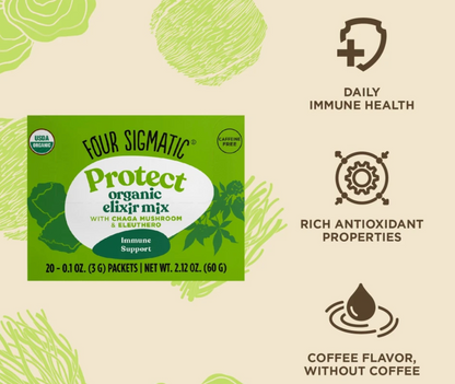 This caffeine free elixir and coffee replacement has a high dose (1500 mg) of chaga mushroom to support a healthy immune system.