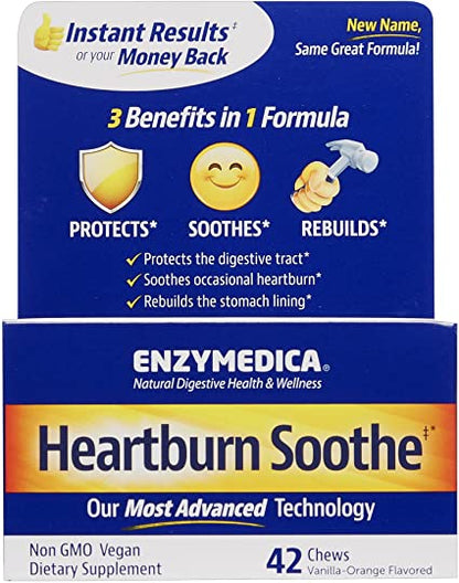 Enzymedica’s Heartburn Soothe‡ starts working immediately, and lasts for prolonged results, day or night.* But relief is just one part of the solution, so it also protects our digestive system and rebuilds the lining of the GI tract for long-term support.*