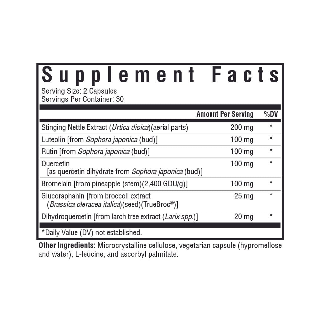 HistaminX by Seeking Health provides a combination of supportive herbal and plant-derived compounds that may work together to support seasonal comfort and a healthy inflammatory response. Dietary changes and environmental factors are thought to contribute to the increase in allergies seen over recent years. Increased consumption of a “Western diet” including fewer fruits and vegetables and more processed grains, fats and meats leads to a significant decrease in dietary intakes of beneficial compounds such as flavonoids, antioxidants, and polyphenols found in fresh fruits and vegetables.*