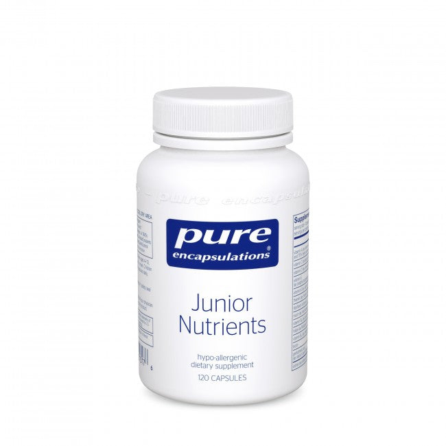 A supplement can help ensure that your child receives all of the vitamins and minerals needed to support growth and development. Pure Encapsulations’ Junior Nutrients is a multivitamin/mineral specifically formulated to contain the essential nutrients to meet the recommended daily nutritional requirements for children and teenagers ages four and up.