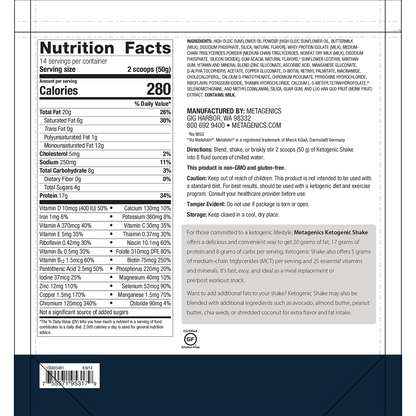 For those committed to a ketogenic lifestyle, Metagenics Ketogenic Shake offers a delicious and convenient way to get 20 grams of fat, 18 grams of protein and 9 grams of carbs per serving. Ketogenic Shake also offers 5 grams of medium-chain triglycerides (MCT) per serving and 25 essential vitamins and minerals. It’s fast, easy, and ideal as a meal replacement or pre/post workout snack.