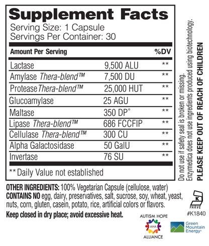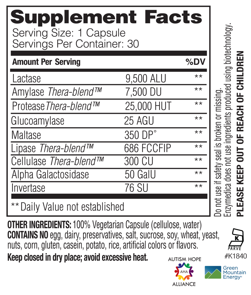 Recommended Use: 1 capsule with each meal containing dairy. More may be taken as needed.