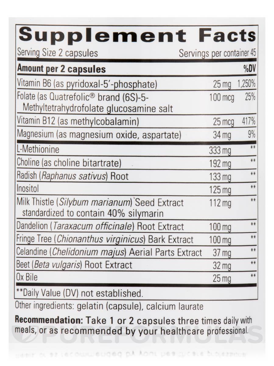 Lipotropic Complex provides comprehensive transmethylation support for the liver by combining phytonutrients and bile salts.* Choline, methionine, and silymarin from milk thistle act as methyl donors in hepatic transmethylation reactions.* Vitamins B6, B12, and folate are required as cofactors for these conversions. In addition, Lipotropic Complex contains botanical cholagogues, such as dandelion, fringe tree, beet, and radish, as well as ox bile and inositol to promote healthy bile flow.*