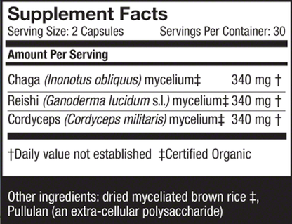 Host Defense Breathe is a complementary blend of Chaga, Reishi and Cordyceps. Chaga is well known in Eastern Europe and Siberia for its support of skin and lung functioning. Reishi has been used for centuries in China to support breathing, cardiovascular system and endurance.* Cordyceps has long been celebrated in Asia as a lung tonic and for energy support. Together, they strengthen respiratory function in normal, healthy individuals.*