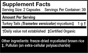 Host Defense® Turkey Tail Capsules use activated, freeze-dried, Certified Organic mushroom mycelium, with a full spectrum of constituents: polysaccharides (beta glucans, arabinoxylane, fucose, glucose, xylose, galactose and mannose), glycoproteins, ergosterols, triterpenoids and other myco-nutrients, which are essential for Supporting Natural Immunity* and the natural microbiome.