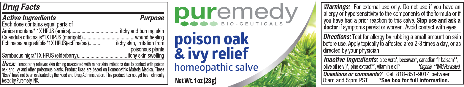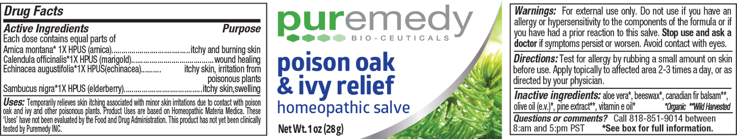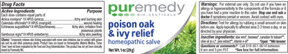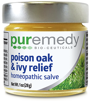 Poison Oak & Ivy Relief temporarily relieves skin itching associated with minor skin irritations due to contact with poison oak and ivy and other poisonous plants. Product Uses are based on Homeopathic Materia Medica. These ‘Uses’ have not been evaluated by the Food and Drug Administration. This product has not yet been clinically tested by Puremedy INC.