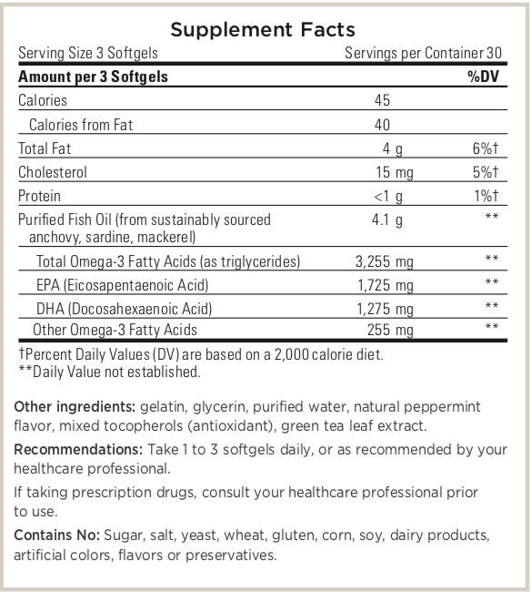 Pure Omega Ultra HP provides a total of 1085 mg omega-3s in one soft gel: