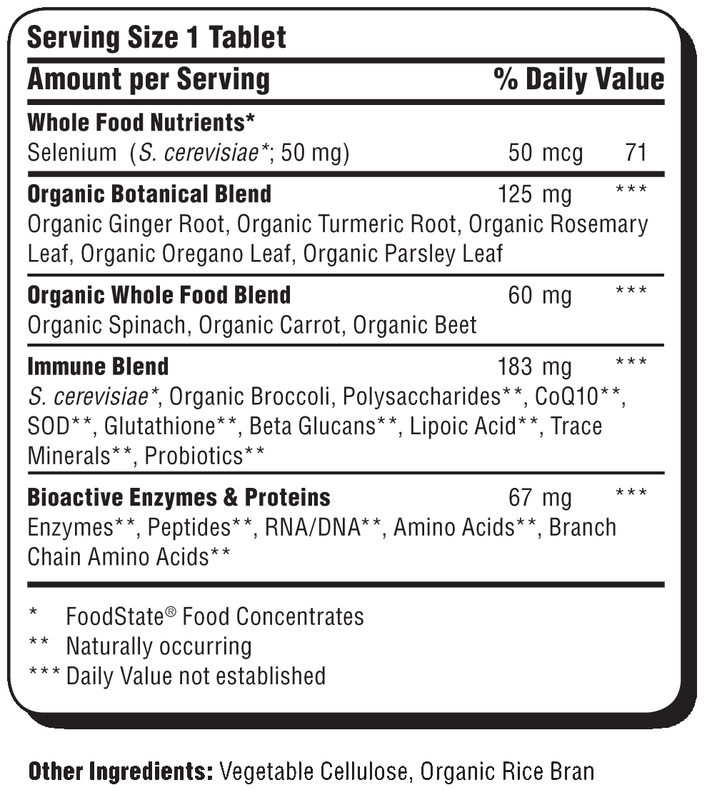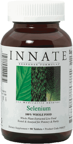 Selenium by Innate is crafted exclusively from 100% whole food nutrients to provide an unparalleled source of this essential trace mineral. Among its functions in the physiology, selenium plays an important role in antioxidant function through the protection of cell membranes, and supports healthy functioning of the immune system and thyroid gland. This select formulation is further enhanced by the inclusion of organic botanical and organic whole food blends, a specialized immune blend, and plant-sourced enzymes. Selenium by Innate is designed to provide the synergy to support selenium's role in the body.