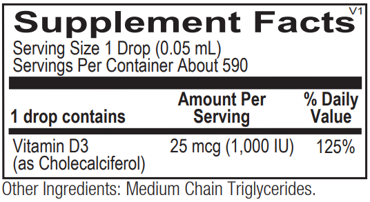 *This is a privately labeled product identical to Ortho Molecular's Liquid Vitamin D3 1,000 IU: Manufactured by Ortho Molecular Products*