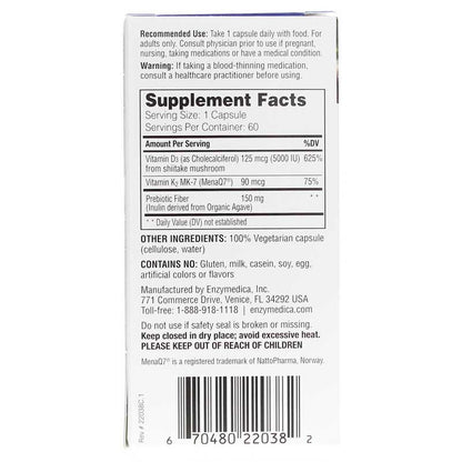Enzymedica's Vitamin D3 + K2 is a whole food sourced, vegetarian, non-GMO solution to your daily vitamin D3 and K2 requirements and includes an extra boost for the microbiome.