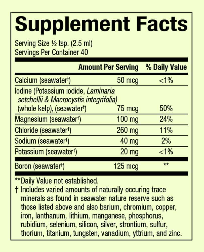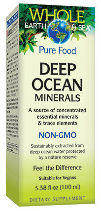 Whole Earth & Sea Deep Ocean Minerals (DOM) is source of concentrated essential minerals and trace elements. It includes varied amounts of naturally occurring trace minerals such as calcium, iodine, magnesium, barium, and chromium. These give structure to our organs, tissues, and bones, and help maintain fluid balance, pH balance, and membrane permeability.*