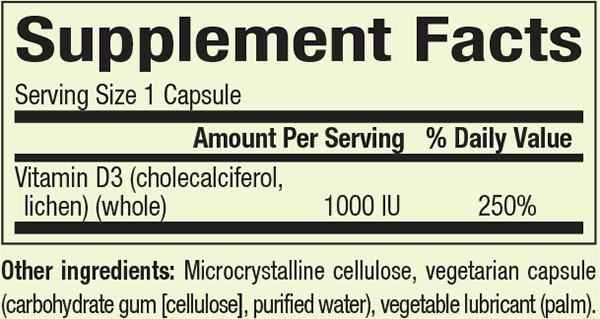 Vegan Bioenhanced Vitamin D3 helps meet individual vitamin D requirements when dietary intake or sun exposure is low.